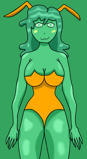 #frog #greenskin #orangehair #stretching #bikiniswimsuit #froggirl