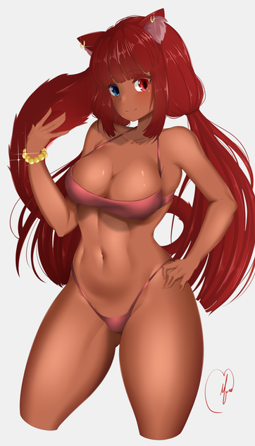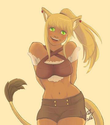 #blackandgold #brownhair #catgirl #darkskin #tannedgirl #thighhighs #thighhighstockings #ffxiv #miqote