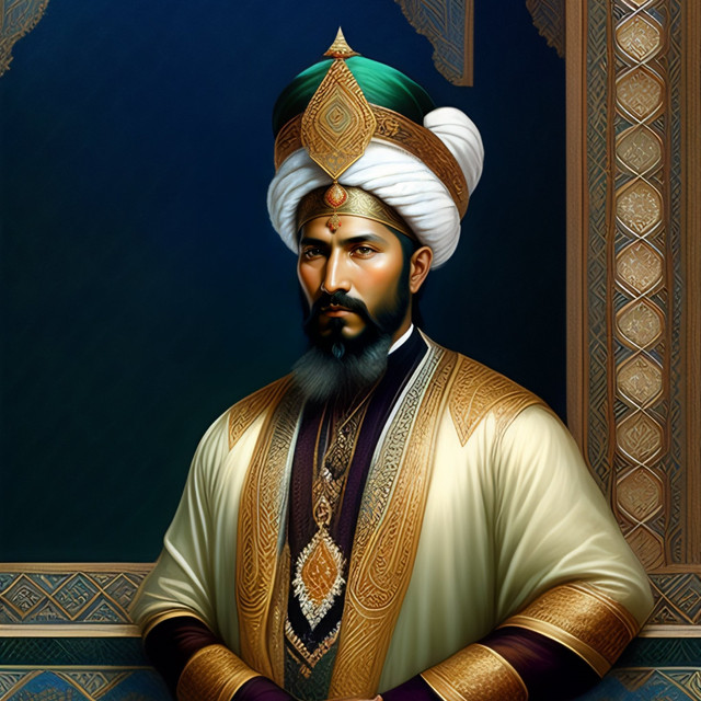 AI generated image of Bobur (eng)Zahiriddin Muhammad Boburning Sun'iy intellekt yaratgan sifatli surati (uz)