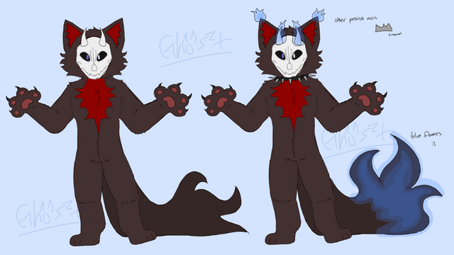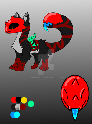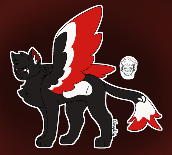 He's based off of the RWBY Creatures of Grimm, specifically the Beowolf! His mask originally looked almost just like the Beowolf's, but I grew a bit wary about doing that and changed it up a bit ;u;