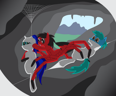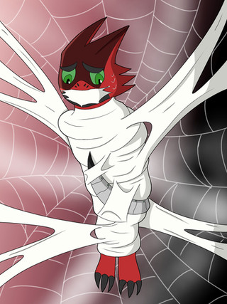 Mister Ry-BluePony1 wanted his character trapped in some silky spider webs. Try and save him, if you wish to get wrapped up as well. >:3**No spympathy faves, please. Don't fave if you don't like the drawing. Deal?**