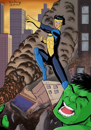 I think I've been reading too much Invincible lately. Although, I don't think there's such thing as reading too much Invincible, that comic is awesome.It has errors and I don't really like the color, but it's finished. And I love Invincible's pose.