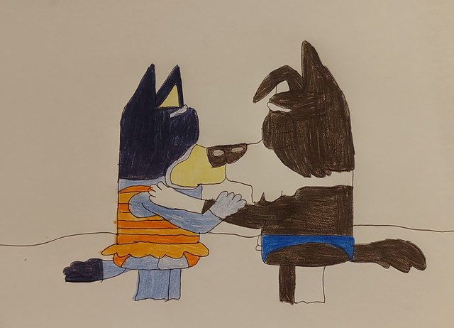 #bandit #bluey #blush #chilli #costume #couple #dog #heeler #hold #love #nuzzle #paws #romance #young #codetski #chilliheeler #banditheeler
