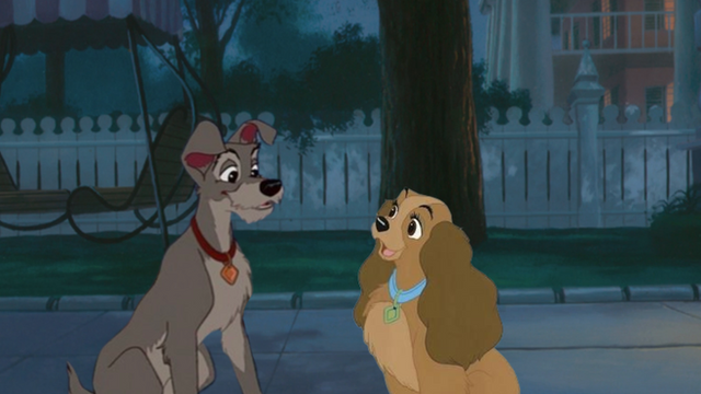 #angel #couple #cute #dog #love #moon #nuzzle #pet #romance #scamp #smile #codetski #ladyandthetramp2