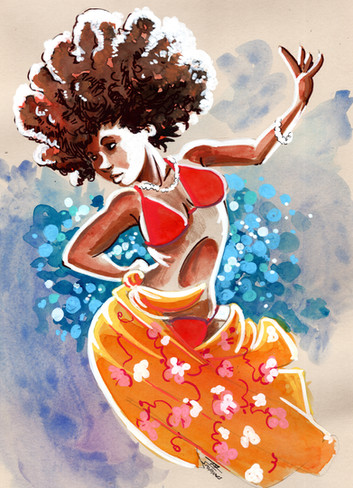 Avec du papier couleurs naturel 250g/m², à l'aquarelle, polychromos de chez Faber Castell, encore et posca blanc.