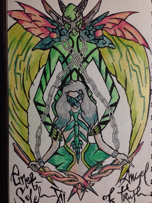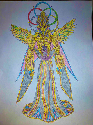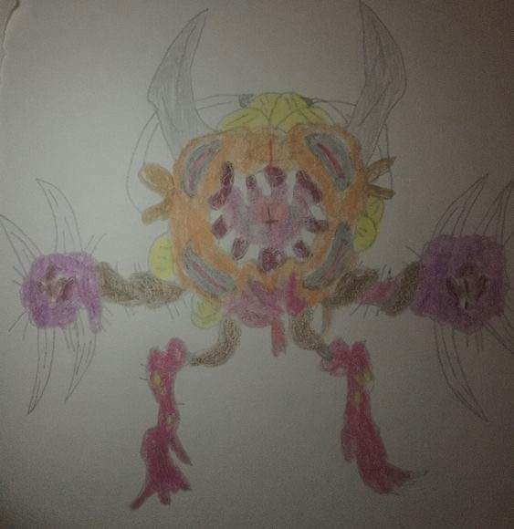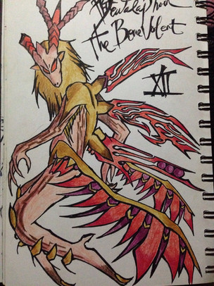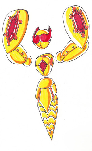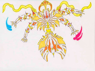 One astronomical tradition associates it with the mythology around Arcas, who was about to shoot and kill his own mother Callisto who had been transformed into a bear. Zeus averted their imminent tragic fate by transforming the boy into the constellation Boötes, called Arctophylax "bear guardian" by the Greeks, and his mother into Ursa Major. This drawing is my reimagination of what Triangulums would look like in demon form.