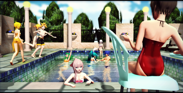 Sexy 3D bikini girls pool party picture nice job and I mean all of this as well