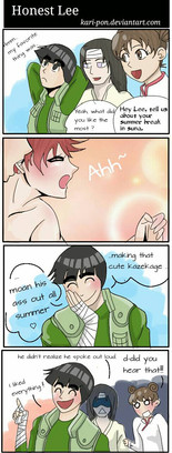 I keep seeing those kinda art work where there's a boy and a girl sharing a stick candy or whatever it is with their mouths. So I though, how about I do one for lee and tenten! Except it will be a comic. Hope you guys like it and if you guys want me to do that sharing a Pocky with mouths with lee and tenten. Let me know in the comment and I'll be happy to do it!πRelated content