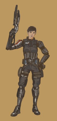 Hopefully in ME3 Shepard will finally get a proper No.1 uniform to wear aboard the Normandy, the only thing that has come close was the Cerberus uniform in ME2... but I always felt a bit dirty wearing that. This illustration is pretty much finished, I was thinking of doing a full Illustration but.. I'll see.