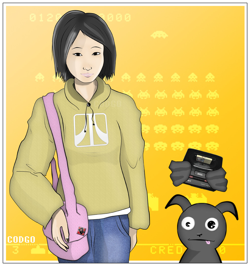 I like the atari hoodie you gave her, Its suppose to be an atari one right? Nice character design too by the way.