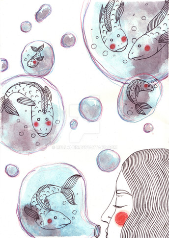 #anime #bubbles #coloredpencil #flora #girl #ink #manga #pattern