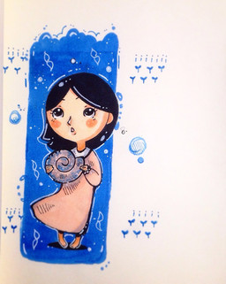Tools/materials: my sketchbook, Colleen colored pencils, Sakura Pigma Micron pen, Sakura Gelly Roll pen, Zig Calligraphy pen, giftwraps, penknife & glue