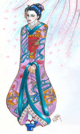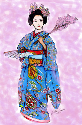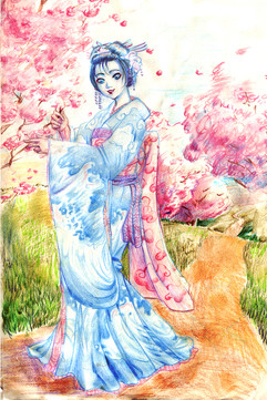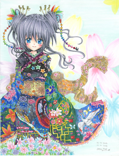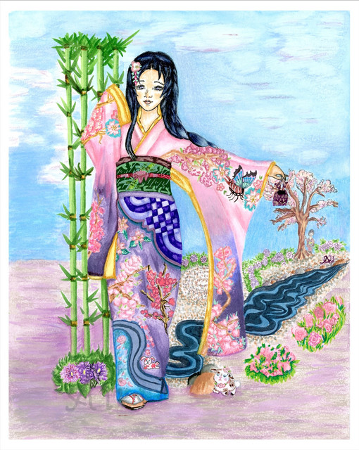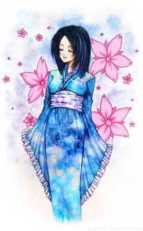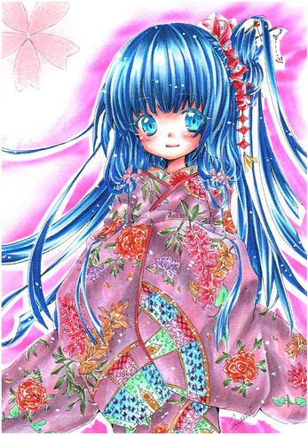 #anime #blue #coloredpencil #elegance #flower #kimono #manga #purple #violet