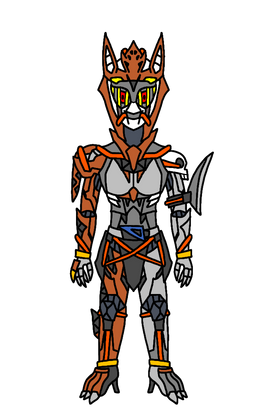 A demonic invasion was the spark that led Al to ask a friend named Hannah to build her a method to join the Riders. Thus came the Catastrophe Sawblade. With this, the steel-forged Rider enters the fray as Kamen Rider Bloodrush.