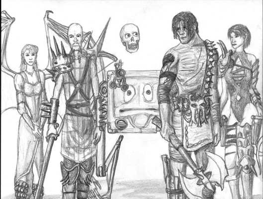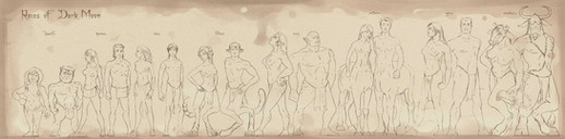 Once at Elfwood I came across one gallery that had drawings of each of the D&D races done to scale as in previous manuals except there was one twist: They were drawn naked. I was intrigued with this idea, but I didn't like the manner in which the artist drew it. First of all, he was a 3rd edition player while I am a 2nd edition diehard, so naturally his halflings looked like kender. But aside from that, the elf was drawn with a small penis. And the half-orc was a work of sublte racism; with kinky hair and a long penis. The half-orc woman was drawn with a hairy chest.Naturally, I decided to draw my own version to show what I felt the D&D races would probably look like naked. I'm still not completely happy with the way this came out, but here it is regardless.