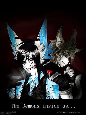 The first thought is 'woah.' Great imagery and display of emotions. The contrast between light and dark play well in this piece. Moving from the lighter area too the darkest corner adds tension. The lighter section is seen through the fight of the two characters. The expressions of each character is perfect in describing fear, anger and confusion. Love how the characters are designed as well! the style is excellent as well. The use of the creation of smoke in the lighter section is intriguing, adding a dreamlike effect. It leads you to question whether or not this has to deal with a broken friendship between the one in the lighter section to the left and the character in the darker area. The shading is phenomenal and the corner character just makes the scene.