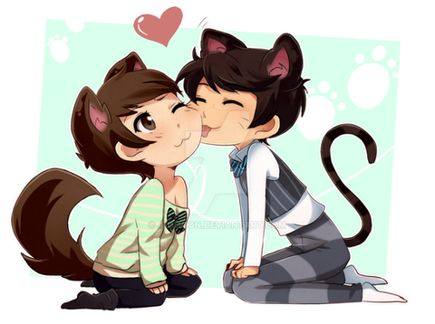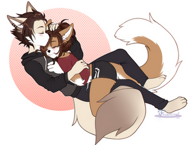 Some piece of cuteness. Sorry for trashing a gallery with some couples here, but I love drawing two loving persons cooperating with each other. -u-