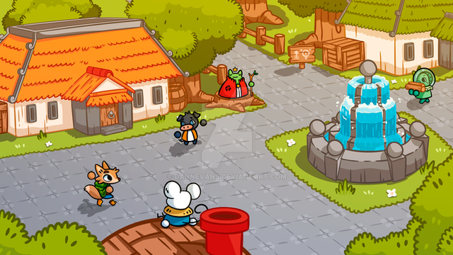 One of the screenshots with pixel art made by me for the game I'm developing called Tailside!