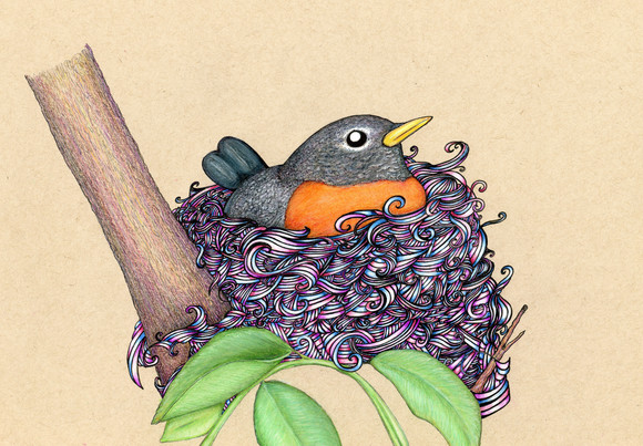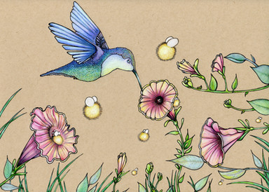 A drawing I did for my grandmother's birthday scrapbook.Prismacolor colored pencils on red textured paper.
