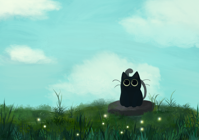 #animal #animals #cat #cute #digital #feline #grass #kitten #kitty #sky #adorable #background #cartoon #digitalart #digitalartwork #digitalpainting #paintingdigital