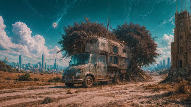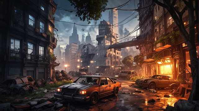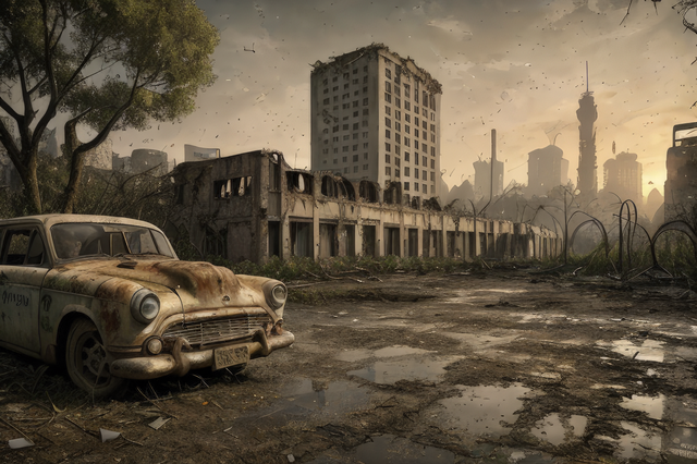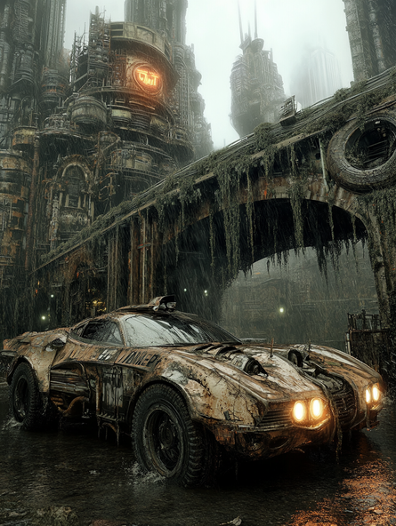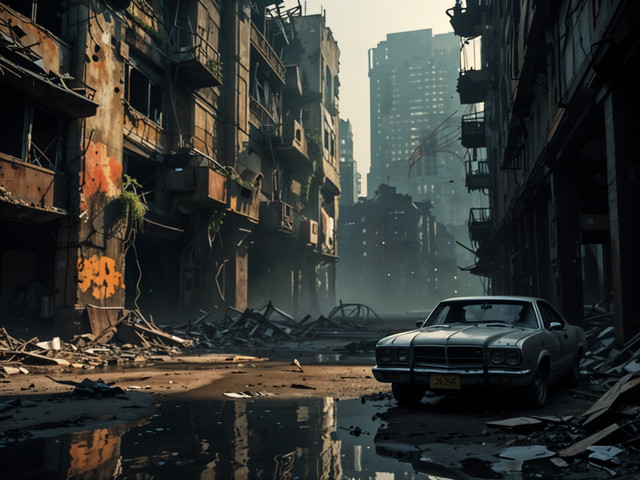 #abandonedbuilding #ai #apocalyptic #buildings #car #cityscape #conceptdesign #cyber #digital #fantasy #paintingdigital #rusty #illustrationdigital