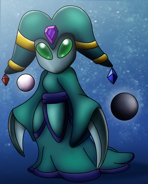 Koen (Kappa Omicron Epsilon Nu) is Trii's kindhearted and strong-willed mother and is the other half of the guardians of his home galaxy. She has the power to turn into a liquid-like substance. The amount that she can turn into ranges from just a small puddle to maneuver through hard-to-reach places, or a giant-tsunami like wave to blast through her enemies.Here's a little more information:
