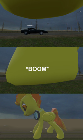 The hint is that he has wings and so it was like cogsy your a silly Derp.... yea cant be bad ass even if you tryed yeah just way to cute. > w>the pony in the comic.