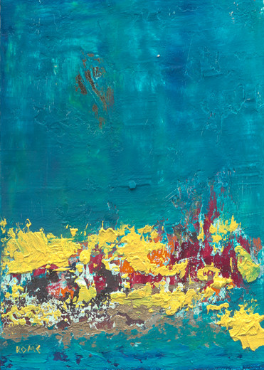 What I really admire about this one is the texture and colors that are just beneath the surface.Β It looks simple but something is bubbling underneath!Β Nice work!Β I always want to do a painting that was more muted (I can't think of the word) and I always end up adding a bright blue or something.