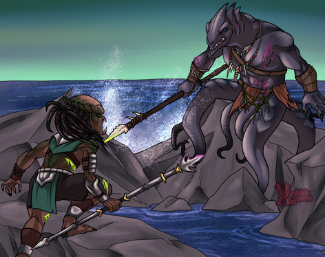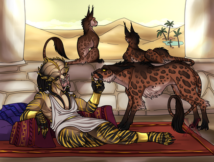 Dre'vik-ka spent her years in her survival trials in the deep jungles of India, long ago. During that time she encountered a tigress who she initially had tried to hunt, until she realized the tigress was protecting her cubs. She spared the tigress, and over the years watched over her as she raised her cubs and protected her territory. They formed a mutual respect and eventual trust, sharing their hunting grounds.