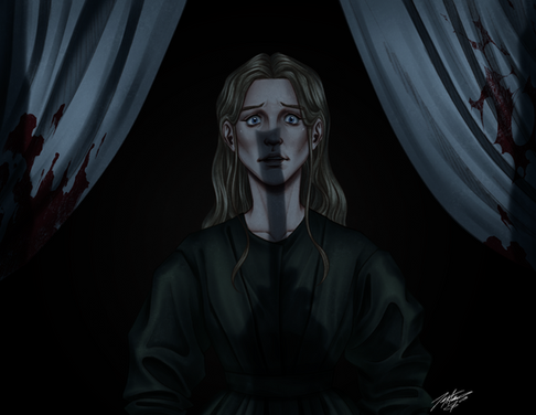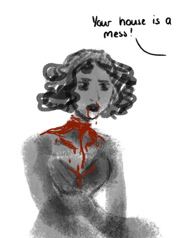 I already said this but SHE LOOKS SO FUCKING GOOD IN YOUR STYLE AND I LOVE HOW THIS IS BLACK AND WHITE EXCEPT FOR THE BLOOD AAAAA ๐ญ you get her constant deadpan expression so perfectly youโre KILLING me Iโm dying thanks :/ ๐๐๐