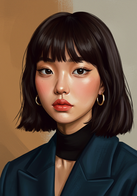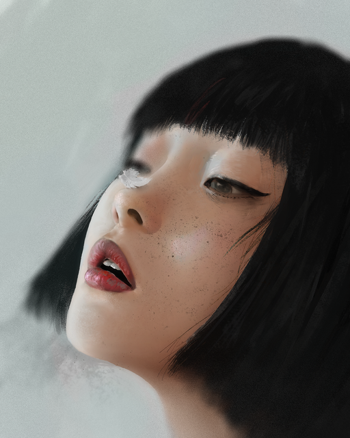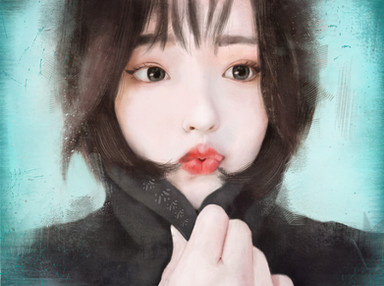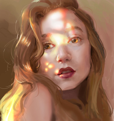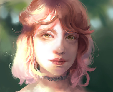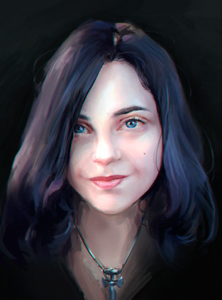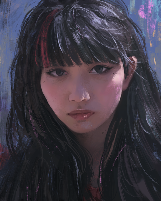 i love that the backround is not disturbing the portrait. it is realy fluentlly and the face do not go under.... i love the way her black-with-pink compostion withΒ a little bit of blue... and the kind that you emphasize it with the orange in the backround. realy cool