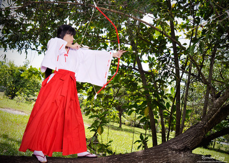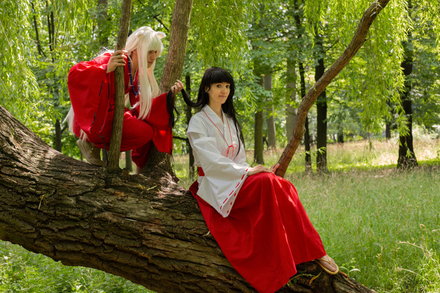 I gave this a fave, not because it was a particularly interesting photo but because it was a very good attempt at one. I have always disliked photos of people just 'modeling' their cosplay at conventions, in blank studio shots or Photoshopped fantasy scenes. I really like location shots like this even if the road in the background kind of ruins the effect. The cosplayers still feel like they are just standing there showing off the outfits rather then creating a story. I particularly like how InuYasha is standing with his sword facing away from Kikyo but with out more cosplayers as enemies I think there would be more 'Drama' if he had his head turned back to look at Kikyo. I think that would have projected his longing for Kikyo better. Personally, I think there is a bit too much bright white with the ground washed out by the sun light but over all, this is a very good try and I hope you will continue with these types of location photos.