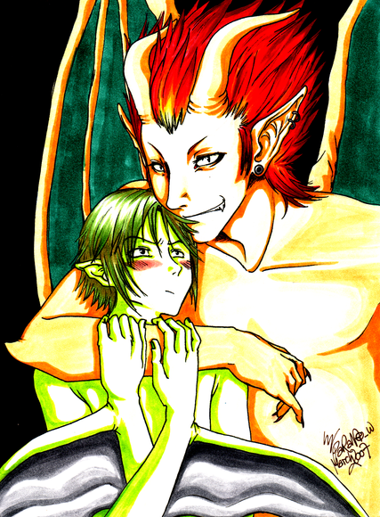 Have to say this is my favourite dA at this moment in time... In all truth, it makes me feel like my art is getting that much better... ^_^Sketched, inked, scanned it... then I spent... about an hour colouring on Photoshop... (The steps leading to this are in my scrap heap)