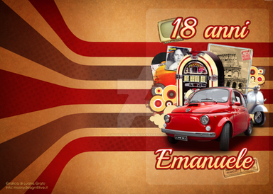 My mom is celebrating her 50th Birthday this spring/summer, so I did layout her a fancy invitation card being send to her guests. Used a lot of all pictures of her first album, as well as some old postcards and papers to achieve that retro vintage look. The upper part you see here is the front and the back, below is the inside. It's folded in the middle.Photoshop and Illustrator.