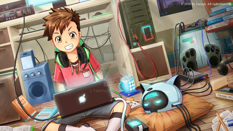 Ooo...that turned out so nicely, Heza! I love the glow of the screens and the lighting! The techy detail at the top is awesome too!