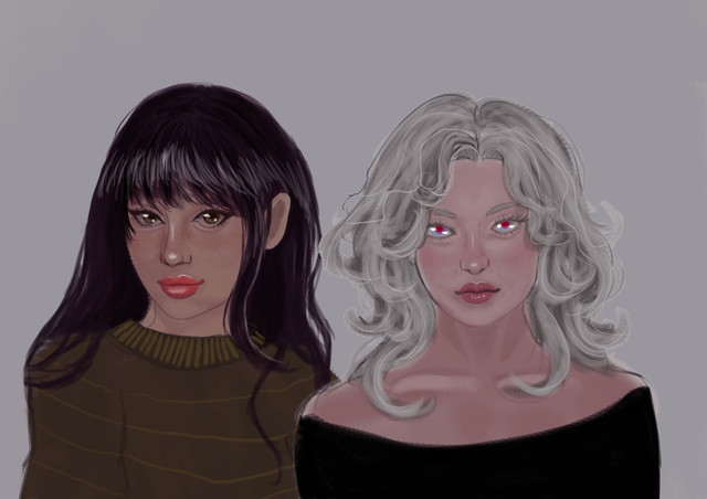 #characterdesign #digitaldrawing #drawing #drawingillustration #fantasycharacter #oc #ocs #procreate #vampire #werewolf #wlw #drawingdigital #wlwcouple #wlwart