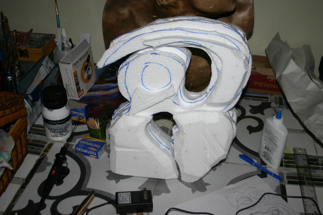 Workshop shot from today's tinkering. This is a plaster mold plug, which I'm going to be using to vacuform a kydex posture collar in my ongoing project to duplicate Knotbot's strappy straitjacket. This is based off measurements taken from its intended wearer. Tiny provided a study cast of her neck, from which I worked. The odd dome at the top of the neck and the angular bits at the bottom are so that the kydex sheet forms without buckling or undercutting. I sort of think the top looks like a medieval jousting helm. More pics soon.Related content
