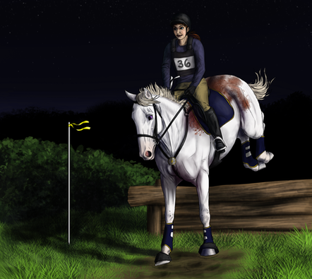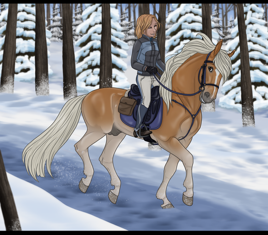 When the clock started the pair raced into the woods, easily avoiding fallen branches and bushes. The speedy Obertaurer Sporthorse wove through the trees, loving the feel of the wind in his mane. Angela rubbed his neck taking her eyes off the path. When she looked up again she saw a large, low hanging branch making a bee line for her head. With a gasp she ducked just in time, the branch whizzing over her helmet. She looked back, and then at Warren, who had slowed, turning his head in worry.