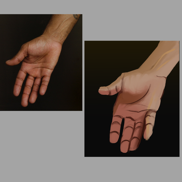 I can see some areas fro improvement, particularly in the shadowed areas of the hand, I think I need more red-orange hues there. I also underplayed the bounce light on the side of the palm.