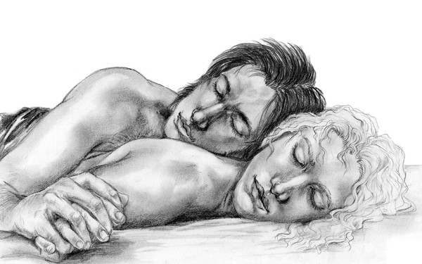 I can't believe I never commented on this. I will now reiterate everything I said before. This is beautiful. Calming, peaceful. I love this and the ink drawing you made of it before. How happy Grantaire looks in sleep. How restful Enjolras seems. I love how they're holding each other. Grantaire's hand in his hair. How Enjolras is clutching him. And Grantaire's scruff. So sexy.