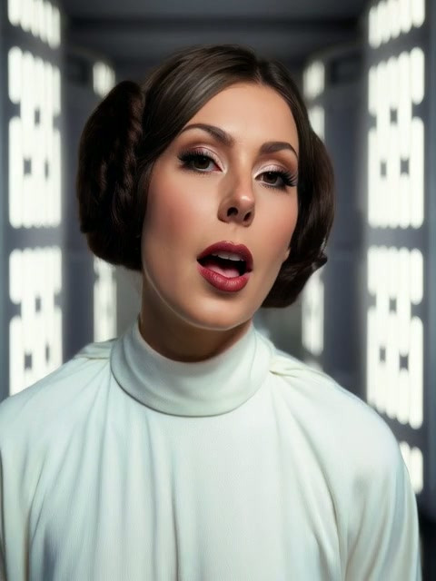 photomanipulation - Carrie Fisher's first scene as Princess Leia in THE EMPIRE STRIKES BACK (1980)