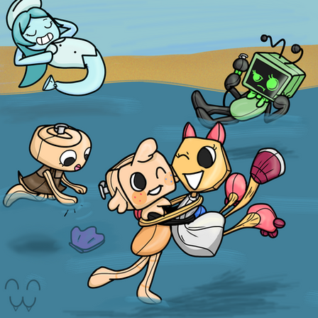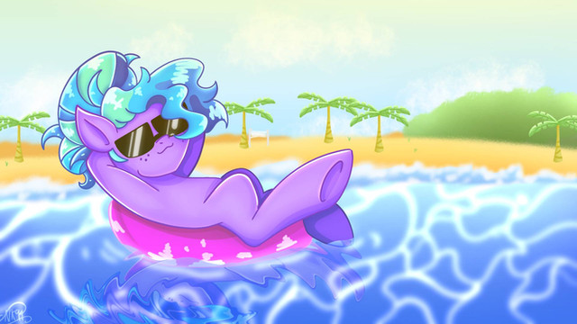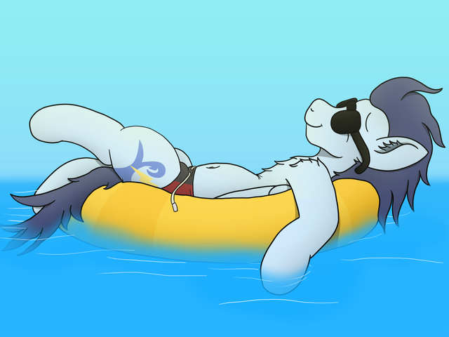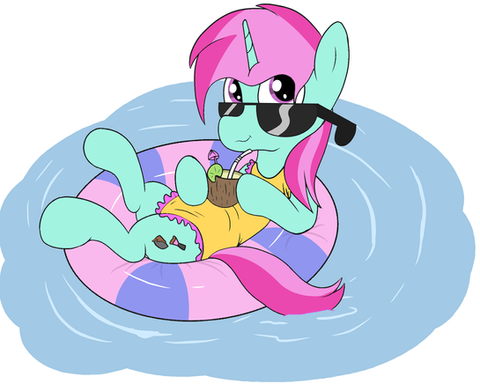 Overjoyed to feel so light and free she flew over to the Shallow waters and thus plopped down on the water, just floating like a life-raft she also had a nice pair of sunglasses to put on her painted on features which was also rubberized during the process. Thus she sat down on her back and chilled for the upcoming summer, drinking the nice air-y taste of her Potion and was eager to see how she could entertain and show her new form to her friends and teacher.