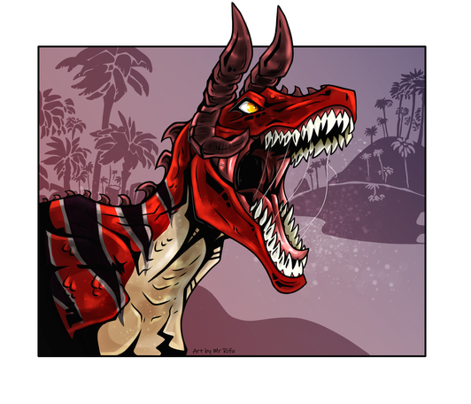 Again, in my series of redesigns for the cast of Primal Rage, Diablo. In the original game he a shorter, pallet-swapped clone of Sauron, with the same animations, but with unique special moves, like being able to breath fire, teleport, and do a charging headbutt that acts as a launcher. Evil in the form of a dinosaur, not much to say regarding his backstory.I changed him to be an Allosaurus, as people tend to do with him. Other additions are the spikes, curved crests that are meant to look like devil horns, and those sideways goat eyes, since that goes along with the "demon" vibe and the associations goats have with all of that. I don't know if it's hard to tell, but I tried to make him emaciated and skeletal, with the skull impressions visible through the skin, very ghoulish.