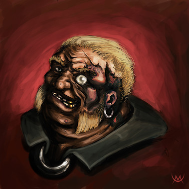 I love the way it looks like he had his face partly cut off and then someone tried to flick together whatever was left and it healed over time. I just love the way this guy looks and honestly think he'd make any 2-dimensional character shoved into him 10 times more interesting and truly shine with a fully fledged story. Great job.