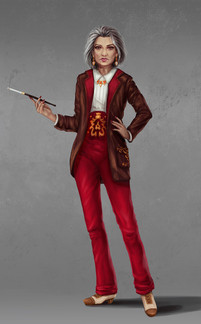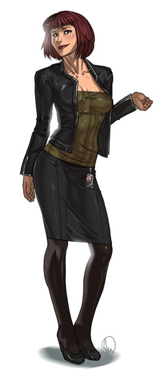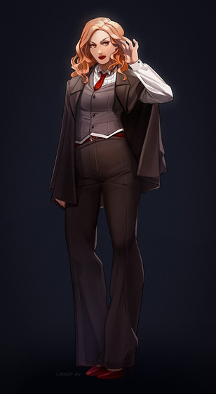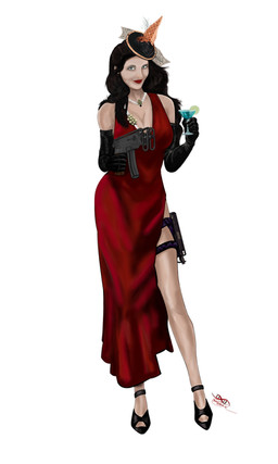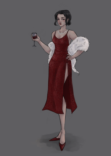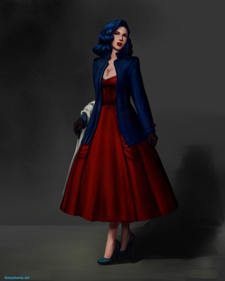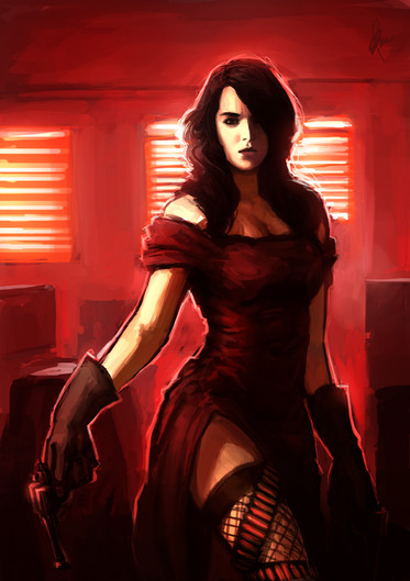 The whole idea of this concept is cliche and character So I dont mind all that. It is a piece focused on rendering and character, not costume design. And no, I do not know of Scarlet from Clue, have to check it out!