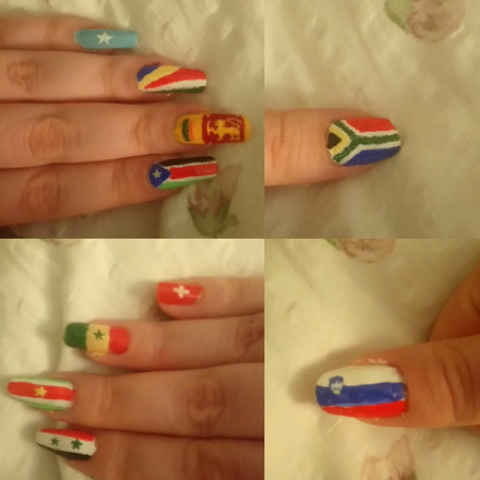 OMG . I HAVE GERMANY ON M LEFT HAND THUMB :3 then its japan, finland, sweden , and russia, I EVEN POSTED IT X3