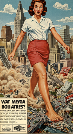 #ai #comic #giant #giantess #tall #tallgirl #vintage #tallwoman #giantwoman #gigagiantess #megagiantess #aiart #giantessart #giantessfetish #giantesscommunity #bingimagecreator