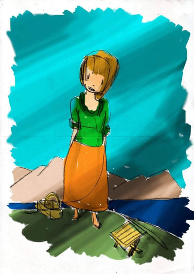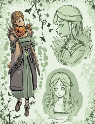 Whoa I really like the details that you've put on her character (not to mention her cool design) AND that meadow mountain is so pretty! Good job!