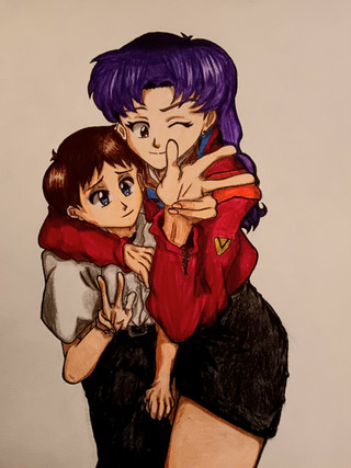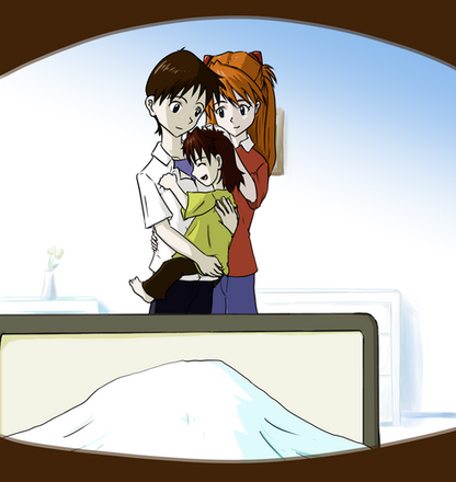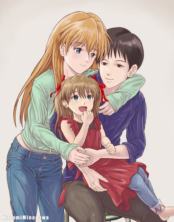 So there's this weird AU I have from back when I first watched 3.0 where it's EoE but the Curse of The Eva is a thing and Asuka and Shinji are stuck looking like 14. Bad Post 3I stuff happens and lol, they have a child. People come back. But that's for writing. Anyway, have Shinji trying to draw something and his daughter interrupting him.This pose was inspired by a drawing by NOMA. (@noma.dic on Instagram)