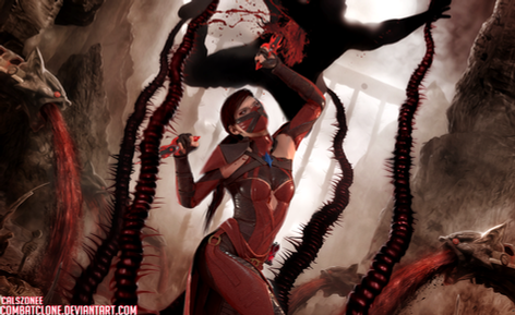 "Shao Kahn has many warriors under his command, but his trust lies solely in the fighters of his own creation. Warrior blood gathered from countless battlefields, fused with sorcery, produced his most effective enforcer yet: Skarlet. An expert tracker, she preys on those deemed enemies of the empire. During kombat, Skarlet gains strength from her opponent's blood, absorbing it through her skin. Shao Kahn has a new mission for this formidable kombatant: discover Quan Chi's true intentions and kill him if he plots betrayal of the emperor."I love Skarlet. I bought her without hesitation upon her release date a few years ago. She's one of my favorite kombatants and I can only hope to see her in the upcoming installment.